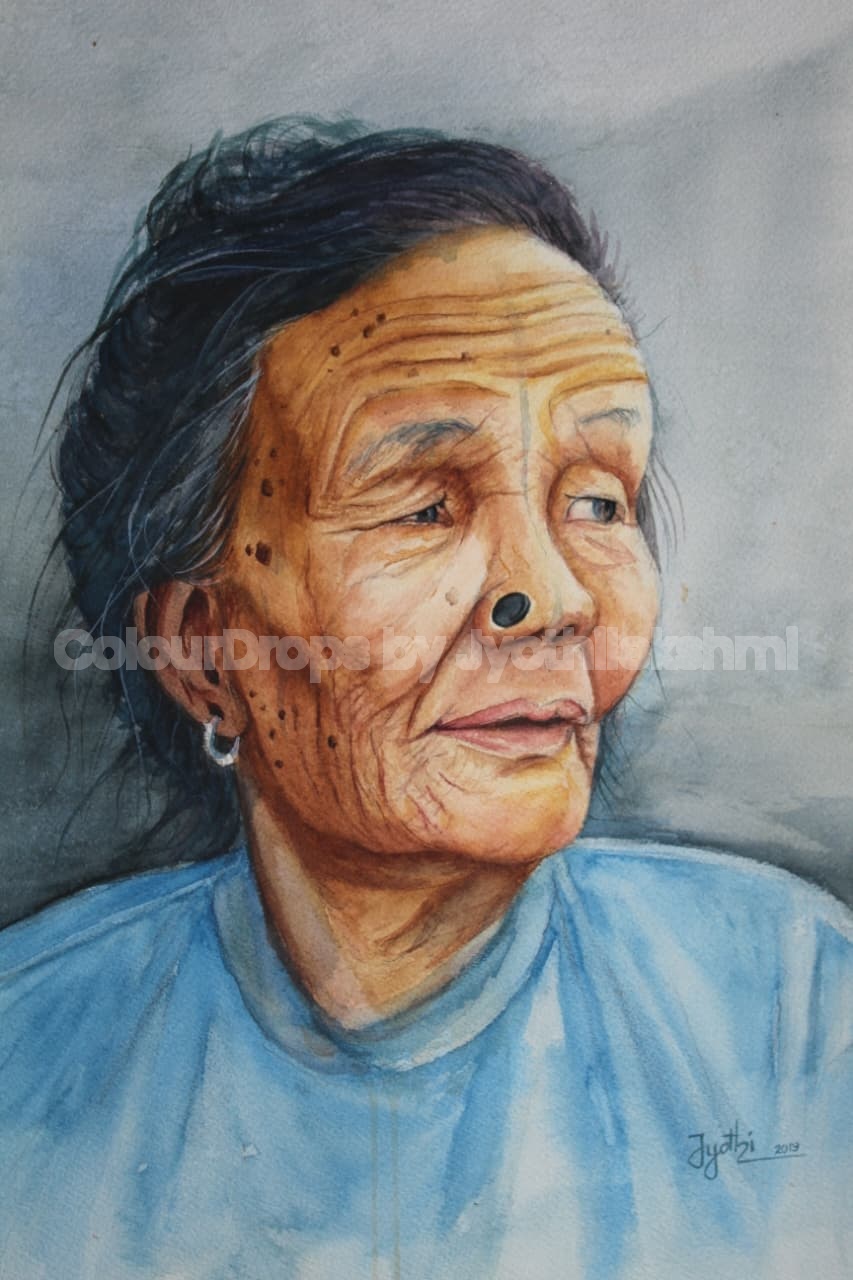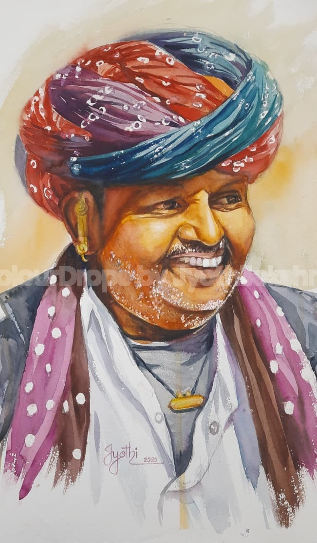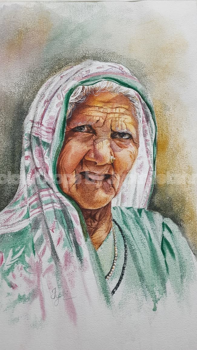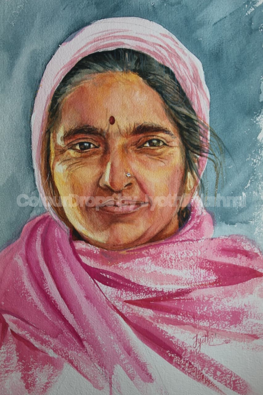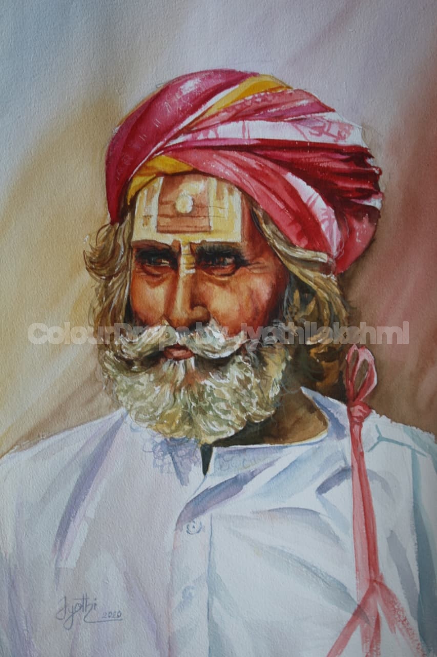 The portraits are a tribute to the people who silently keep traditions alive. Each face, each wrinkle, each adornment carries the weight of memory, heritage, and cultural identity. The subjects are not imagined ideals, but real people who embody the spirit of Bharat’s timeless samskriti — the refined culture that is woven through daily life. The saint absorbed in contemplation, the elder whose wrinkles map the passage of time, the village women whose gaze carries resilience and grace, the man crowned with a turban of dignity — each is a custodian of stories that shape who we are. These portraits are inspired by the unspoken poetry of ordinary lives, by the way faith, simplicity, and endurance manifest in the human form. Through delicate strokes, flowing drapery, and luminous colors, the portraits echo the cultural essence that resides not only in monuments and texts but also in faces, gestures, and attire.